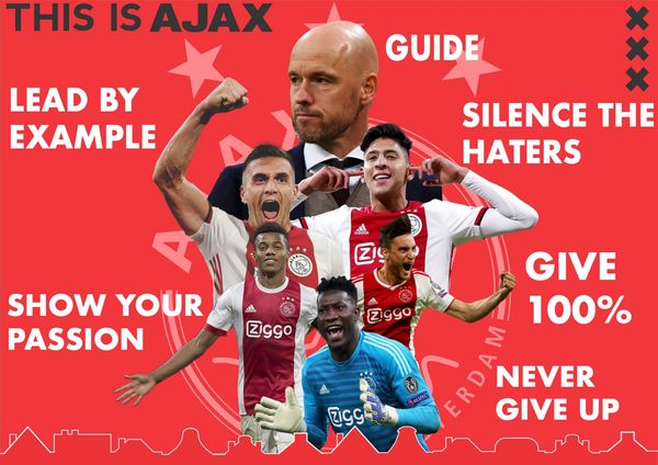 This was the original draft of the poster I made for FC Ajax. They wanted to have a motivational message for the players. I could add the opponent to make the Ajax players focus on them. I then took out the opponent to only have a focus on the message I wanted to send. I had doubts that it would be taken out of context.
